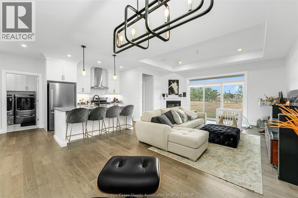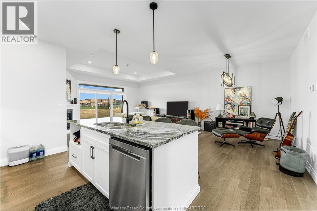 Step into luxury at 2398 Barkley, a beautifully finished 2-bedroom, 2-bathroom ranch townhouse in a prime east Windsor. This elegant home features a custom kitchen with an oversized quartz island, flowing into a bright great room with gas fireplace and a dining area that opens to a spacious covered patio. The primary suite includes coffered ceilings, a large walk-in closet, and a stunning ensuite with a ceramic and glass shower. With 9-foot ceilings, engineered hardwood floors, detailed trim, and a main floor laundry room, every inch is thoughtfully designed. Lawn care and snow removal are covered with a $95/month fee, and the sodded yard with sprinkler system is included. Seller is open to finishing the basement before closing at an agreed price. Seller reserves the right to accept or reject any/all offers for any reason. (id:4555)