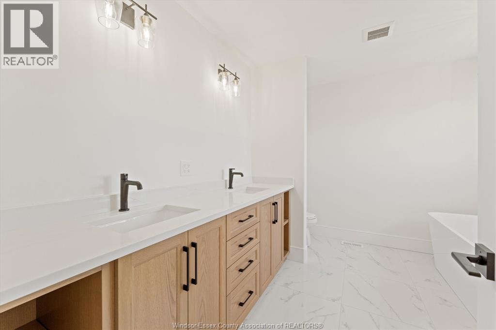 Crafted with exceptional attention to detail and elevated by an impressive selection of builder upgrades, this newly built “Luna” Model by HD Development Group (WEHBA 2025 Builder of the Year), is a stunning example of modern luxury in the highly sought-after Oldcastle Heights community. Featuring a distinctive floor plan, the main level features oversized black interior windows, 8-foot interior doors, wide plank engineered hardwood flooring, and a beautifully curated full bathroom featuring striking accent tile and designer fixtures. At the heart of the home, the chef-inspired kitchen is both elegant and highly functional, showcasing premium cabinetry to the ceilings, a center island with a waterfall countertop, thoughtfully designed coffee bar complete with an additional sink and access to a large walk-in pantry. Sliding doors off the rear living area open to a generous space for a covered patio, while the front porch also offers a covered area for seating. Upstairs features 4 bedrooms, each with their own walk-in closet, and 3 full bathrooms providing exceptional comfort and convenience for large or growing families. The primary suite is a true retreat, featuring a tray ceiling, a spacious walk-in closet with premium wood shelving, and a spa-inspired ensuite with double sink vanity, soaker tub, and a custom tiled shower. The second floor also includes the laundry room featuring soundproof technology for extra ease and comfort. Minutes away from all major amenities, this exceptional home represents a rare opportunity to own a truly premium new build in one of Windsor-Essex’s most exciting developments. (id:4555)